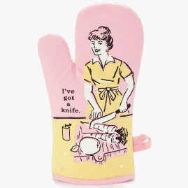 Is this I’ve Got A Knife Oven Glove a statement of fact, or a warning? Whatever it is, it’s pink, cute and perfect for your kitchen. Our retro inspired range of oven gloves adds a splash of colour to your kitchen, along with a dash of attitude.