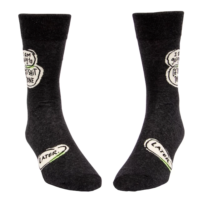 The ‘I’m Going to Get Sh*t Done, Later’ Men’s Socks feature a funny panoramic design in a dark grey and magnolia colour way. Put your feet up and rest assured that you have plans (for later).