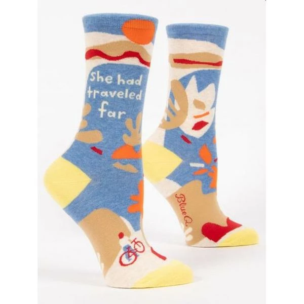 Women’s shoe size 5-10. 55% nylon; 43% combed cotton; 2% spandex. Sometimes “far” is the other side of the world… and sometimes it’s just to the inner caverns of your mind. Pretty deep for a sock, huh?