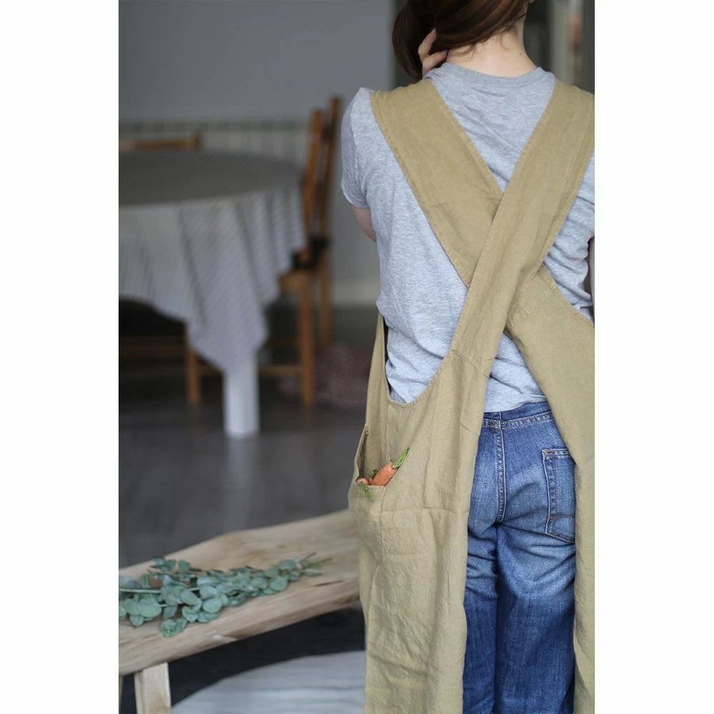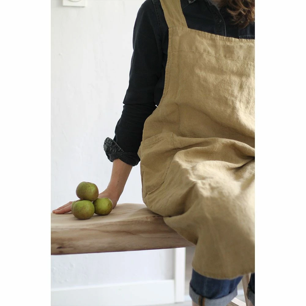 This Japanese washed linen apron is exquisite. More than just an accessory for cooking, this crossed apron on the back is one of those delicious garments that you’ll want to put on when you get home, especially if you have guests. Delightful touch and in a few tones that fall in love.