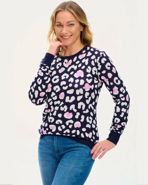 Sugarhill Brighton Callie Navy Leopard Jumper
