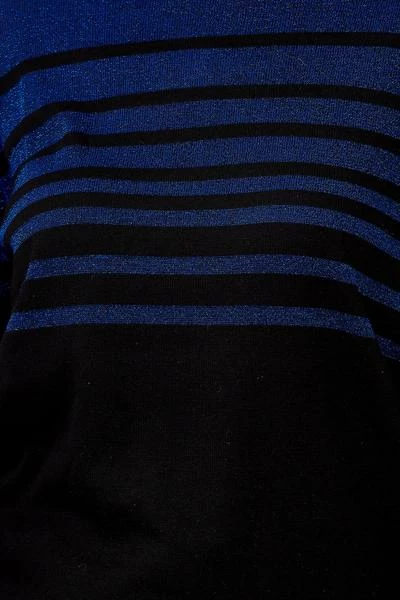 This sparkle jumper brings a bright note to cold-weather days. Featuring a sparkly deep blue stripe design on a black base. Created in a cotton mix knit for extra cosiness, this jumper features a round neckline with ribbed trims along the hemline, cuffs, and neck.