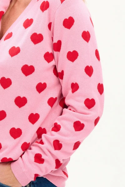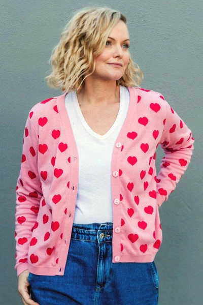 Sugarhill Brighton Willow Cardigan – Pink/Red, Heart Adult