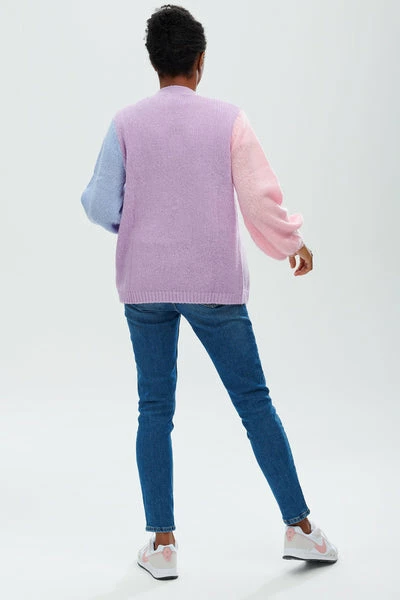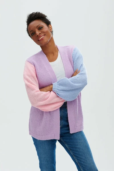 Sugarhill Brighton Yvette Cardigan – Lilac, Blue, Pink Block Colour Adult