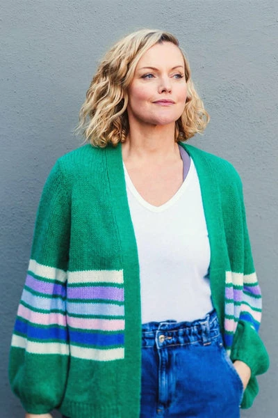 Sugarhill Brighton Yvette Cardigan – Green, Block Colour Stripes Adult